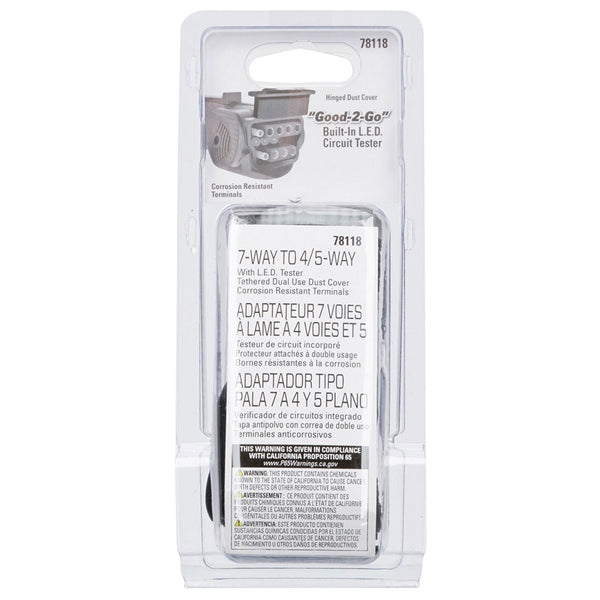Part Number: 702305, 7-WAY FLAT PIN TO 4 & 5-FLAT ADAPTER W/L
